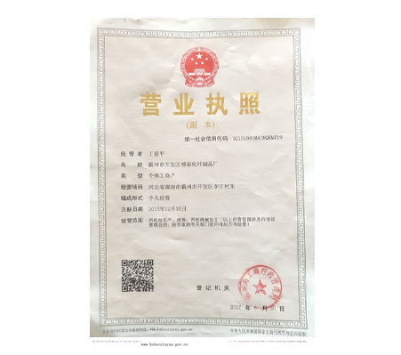 Strong technical force and advanced production technology 霸州市開發(fā)區(qū)博裕化纖制品廠是一家生產(chǎn)丙綸長(zhǎng)絲的大型企業(yè),擁有先進(jìn)的紡絲生產(chǎn)線,現(xiàn)有技工8名,職工200多名,形成華北地區(qū)產(chǎn)量較大、品種較全、技術(shù)力量雄厚、生產(chǎn)工藝先進(jìn),以生產(chǎn)300D—1800D各種中、高、強(qiáng)丙綸長(zhǎng)絲為主導(dǎo)產(chǎn)品